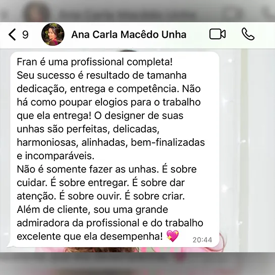 Confira o que nossas Clientes e alunas dizem sobre a expert Franciella e seu trabalho